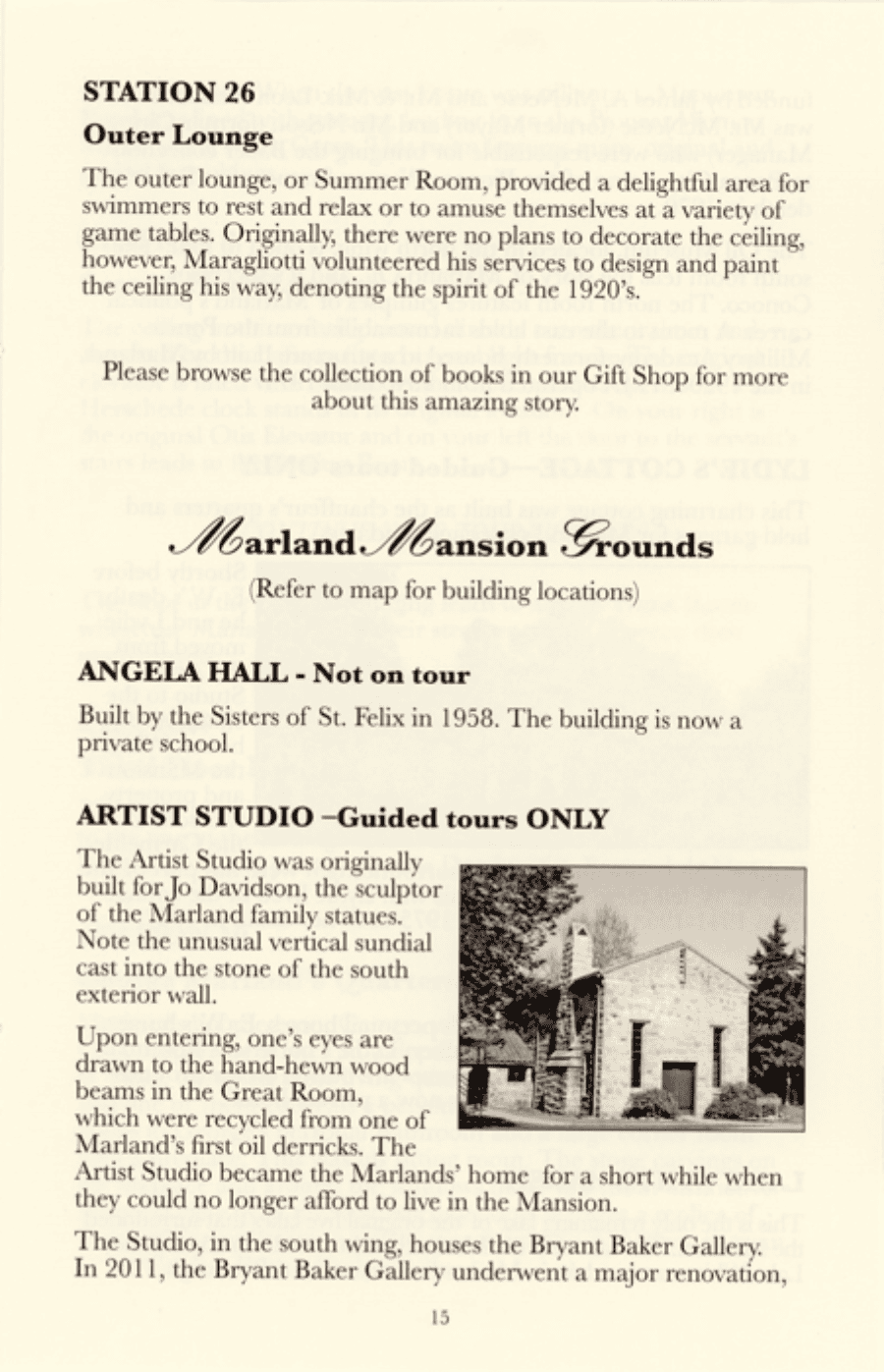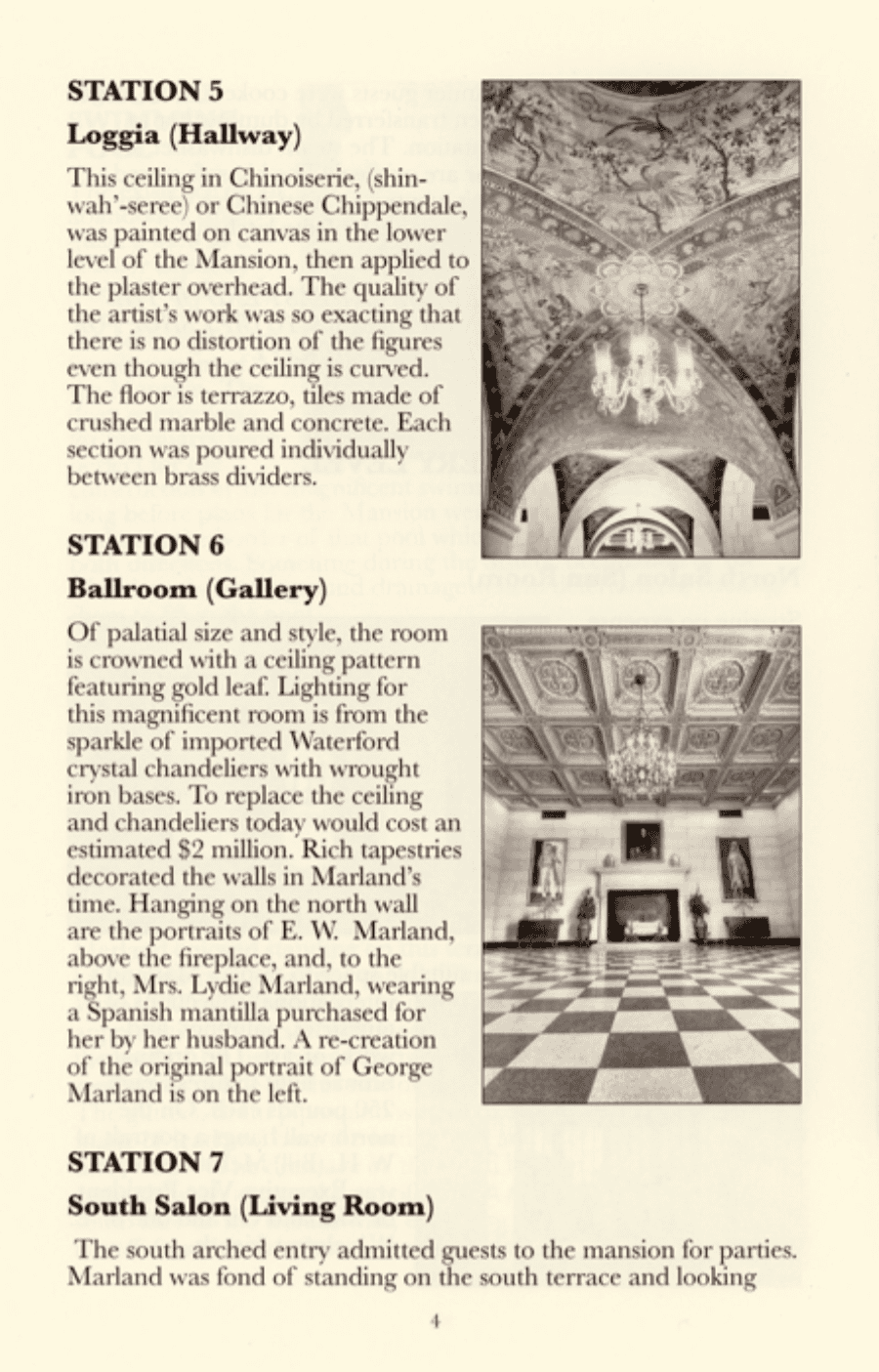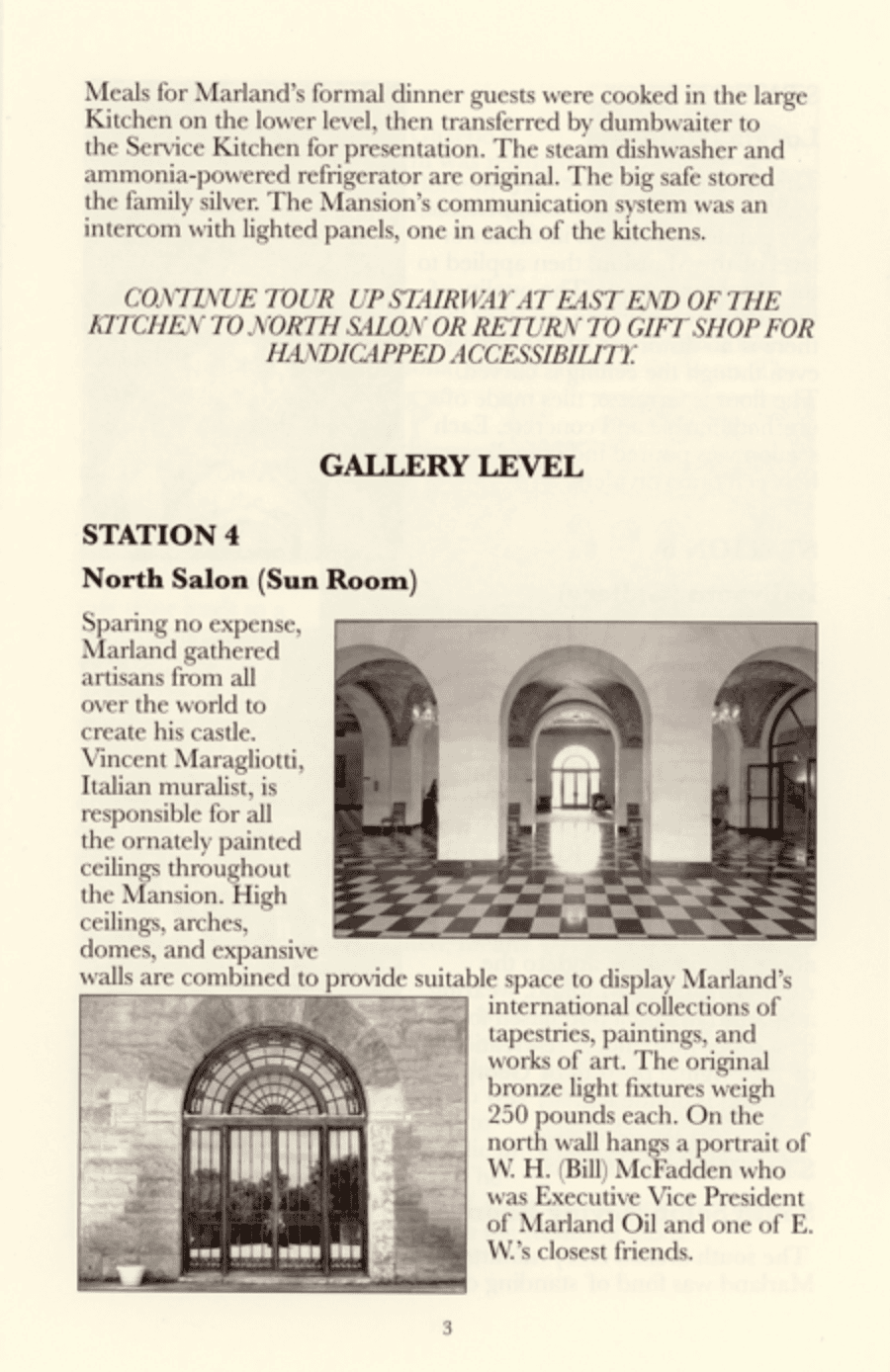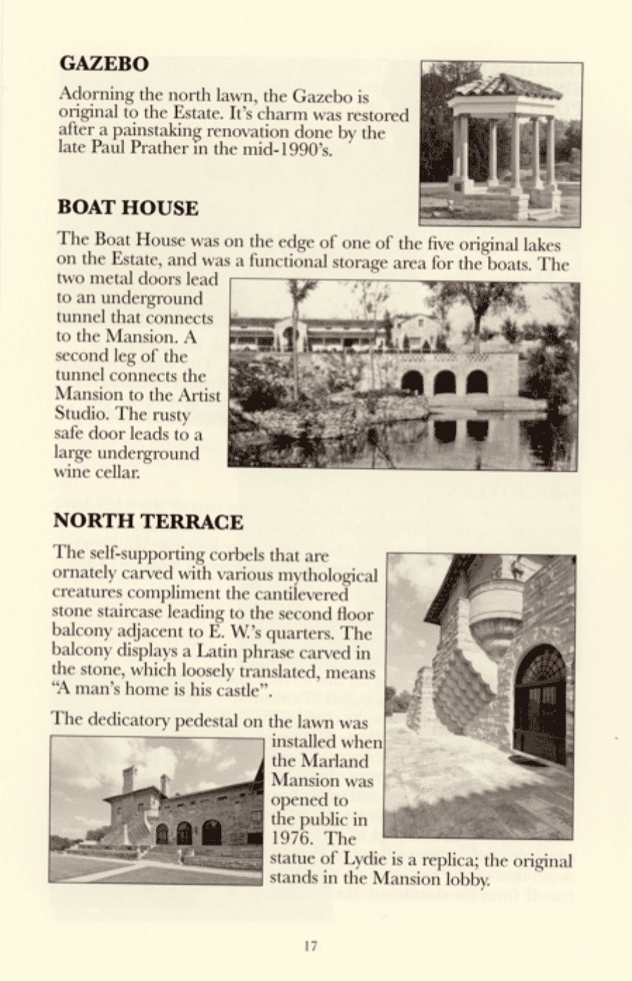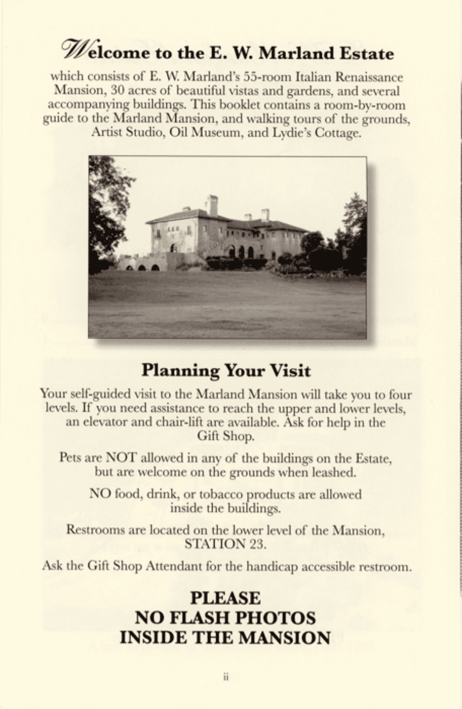 After the beautiful photo gallery, I've scanned & included the Marland Mansion & Estate Tour Guide that describes the many rooms and some history about Marland. At the very end, I included links to some relevant Resources. Enjoy...