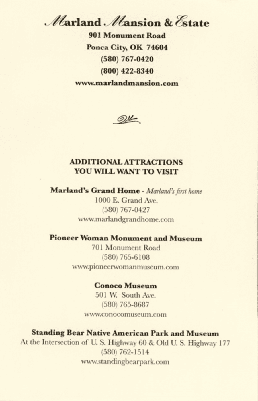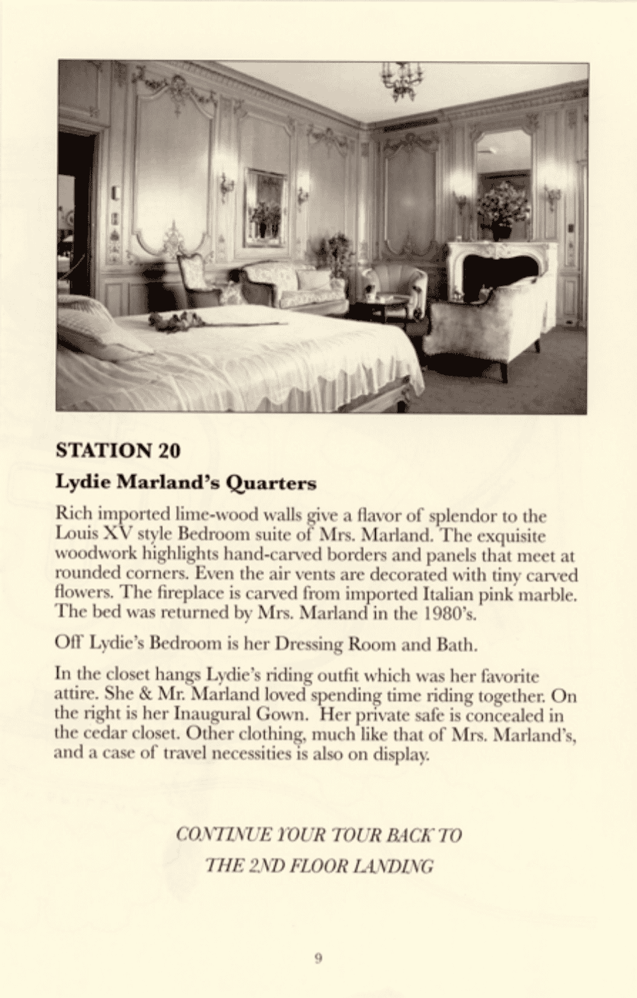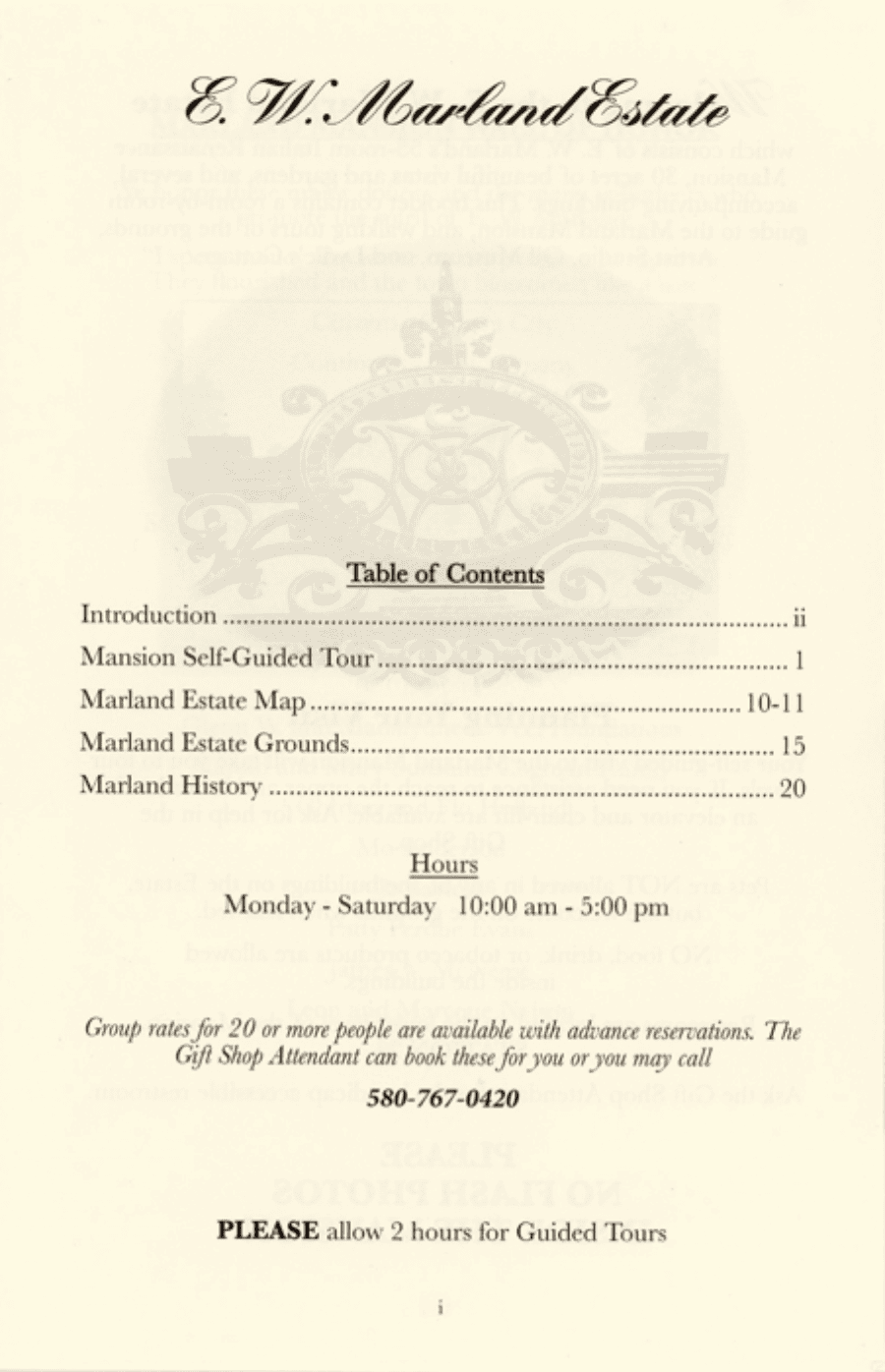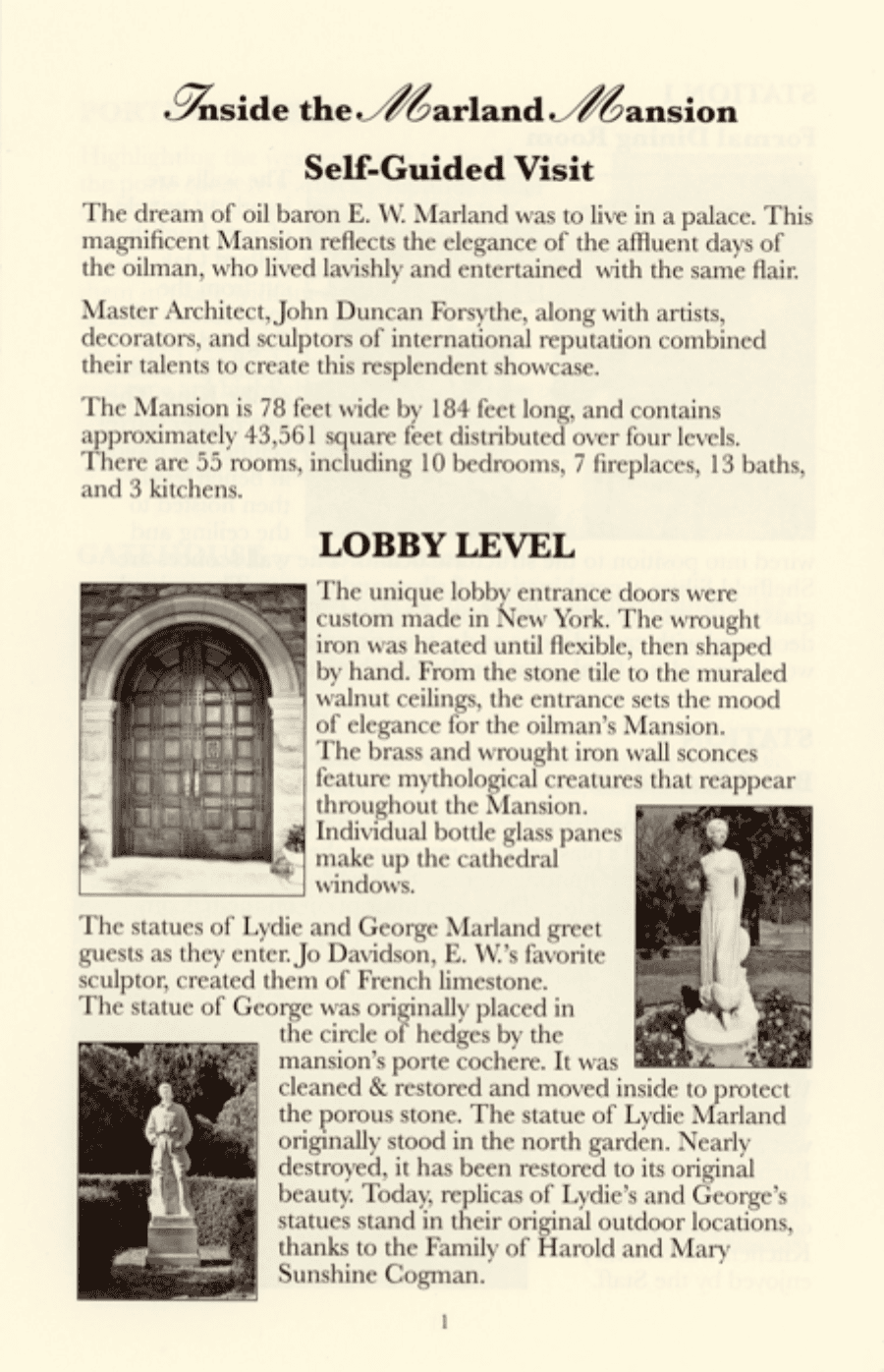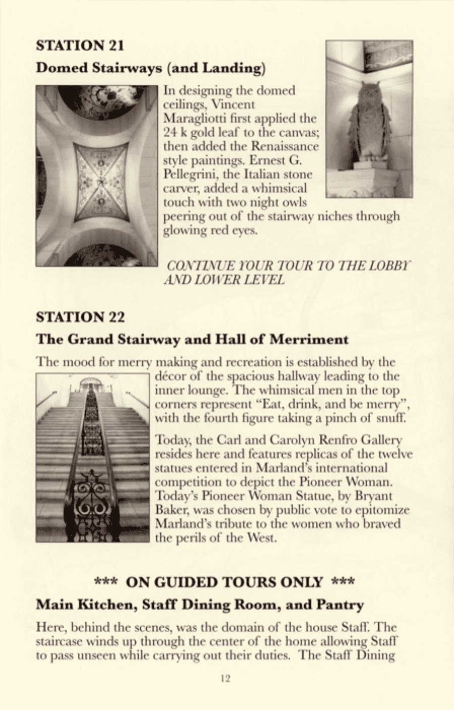 After the beautiful photo gallery, I've scanned & included the Marland Mansion & Estate Tour Guide that describes the many rooms and some history about Marland. At the very end, I included links to some relevant Resources. Enjoy...